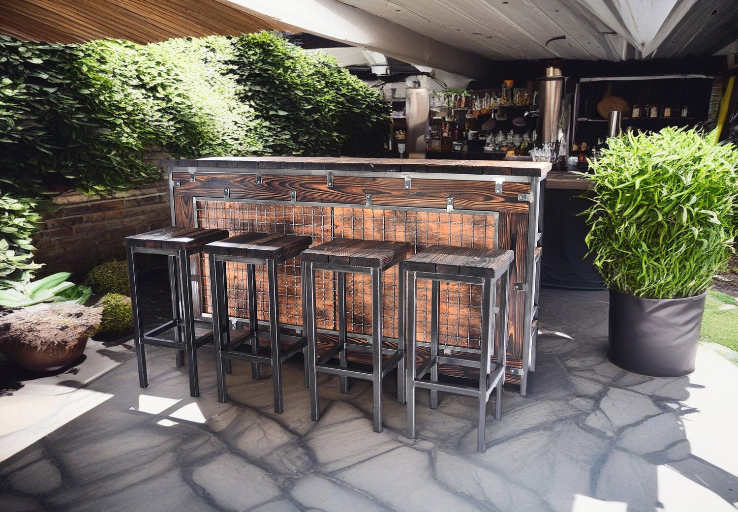 Ręcznie robione stołki barowe w stylu loft z drewna i metalowych elementów....