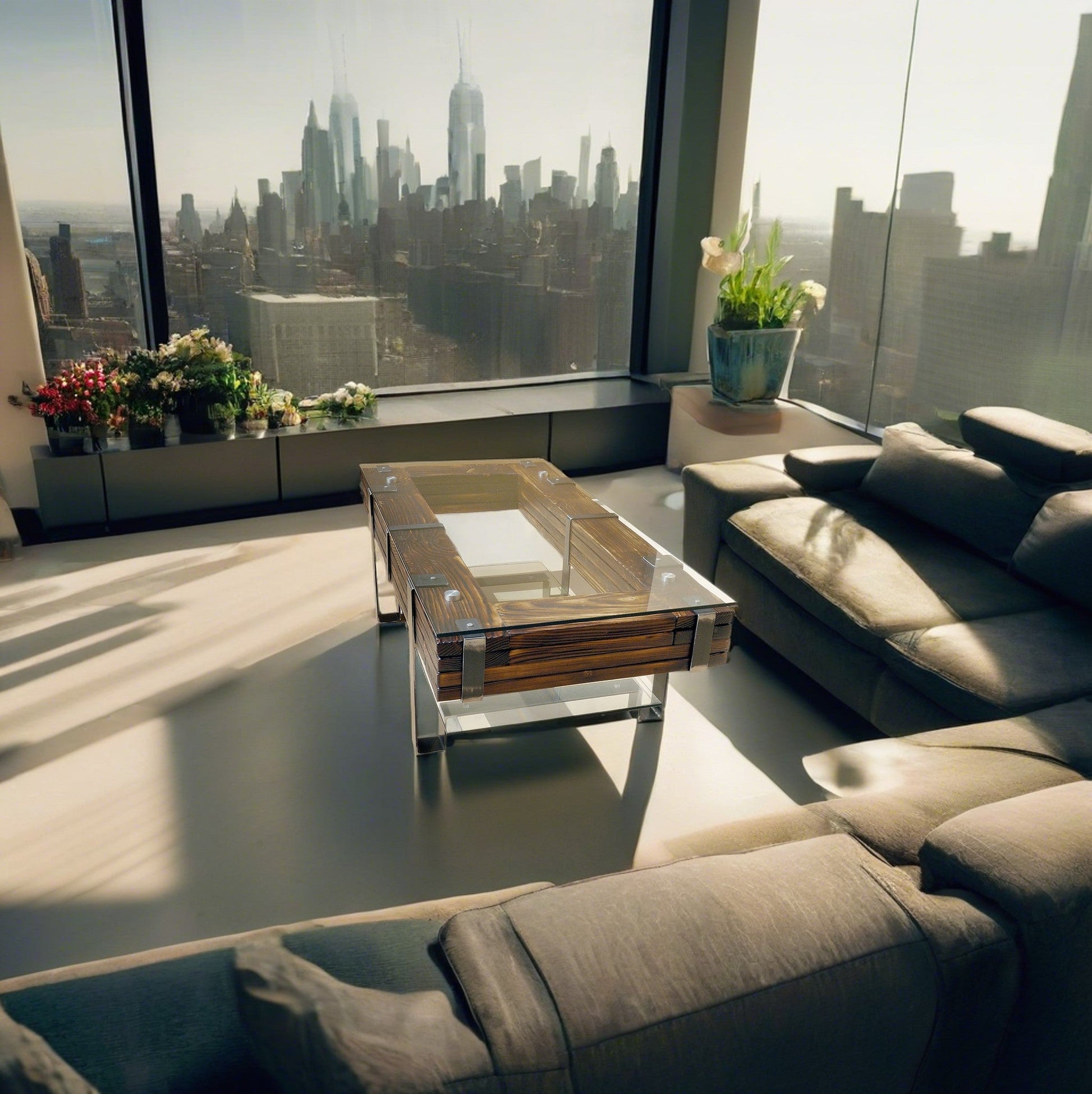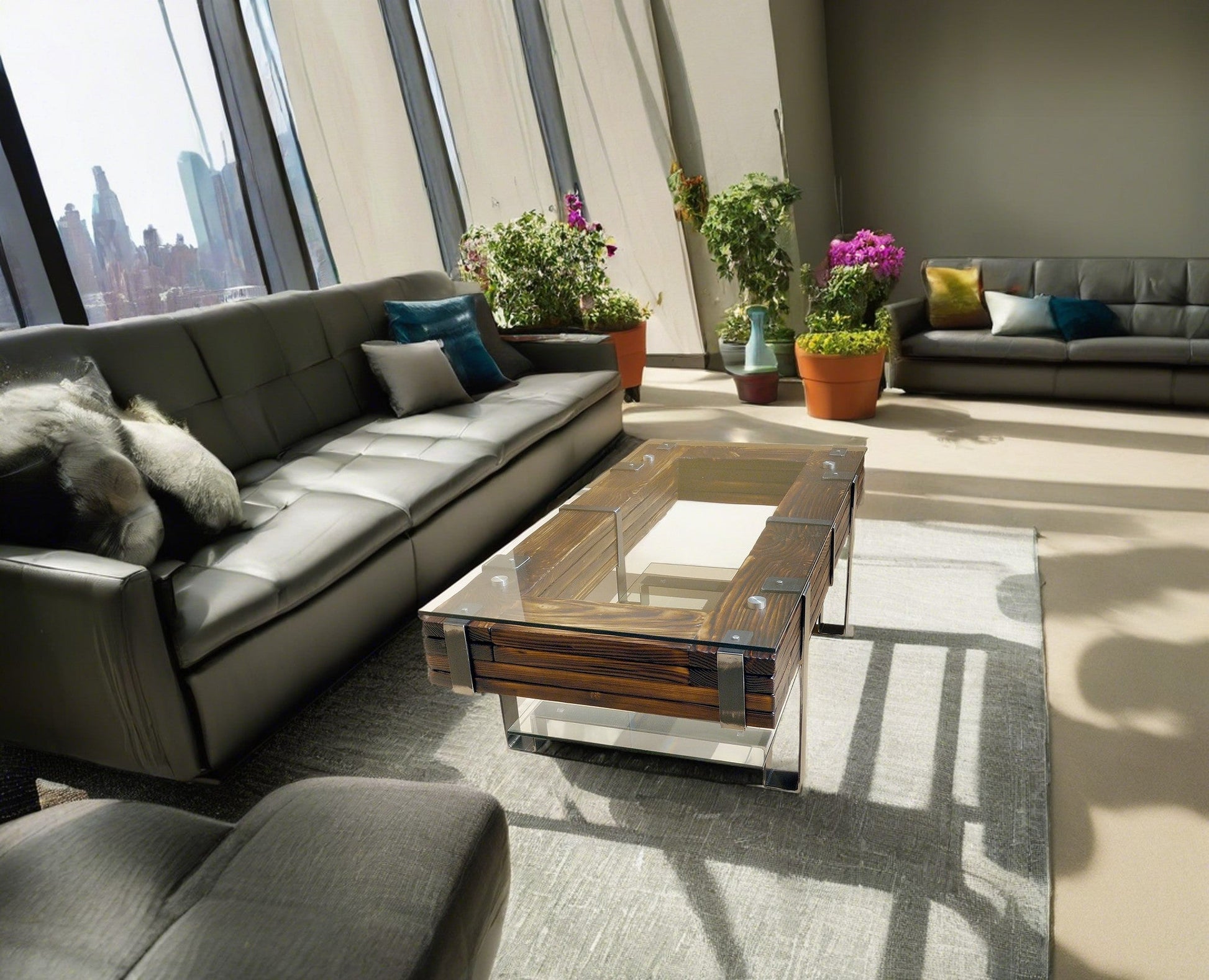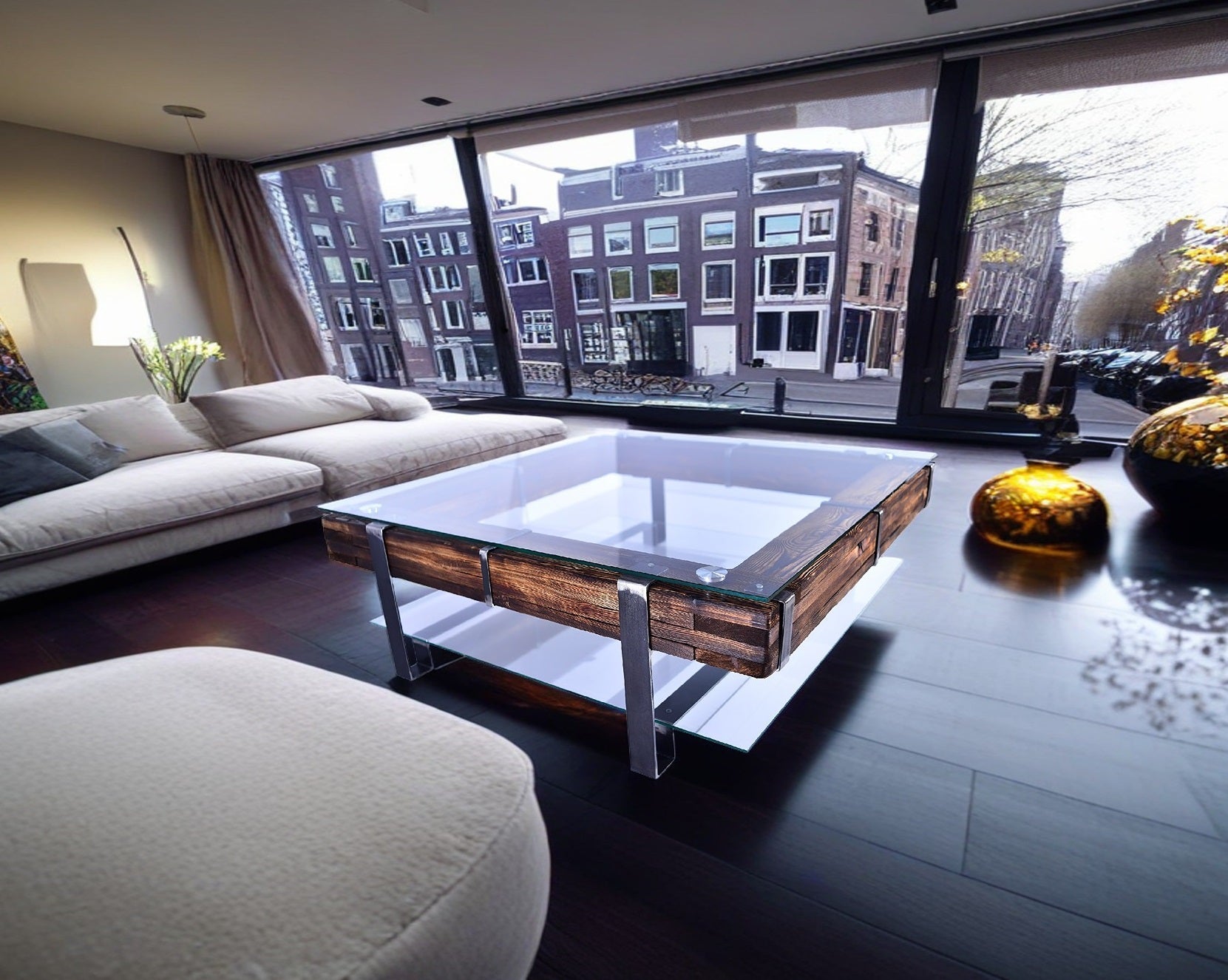 CHYRKA® Coffee table LL living room table LEMBERG Handmade wood glass metal